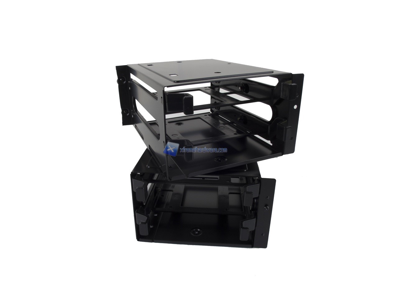 A seguire verso l’alto troviamo ben due Cage che ci permetteranno di installare per ciascuno due SSD o Hard Disk classici viste le slitte compatibili con entrambe le disposizioni dei fori.